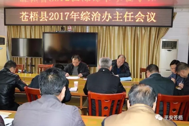 近日,苍梧县召开全县综治工作会议。会议学习传达全区、全市综治办主任会议精神,总结我县2016年度综治工作,研究部署2017年综治平安建设工作。