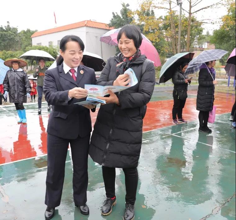 3月8日,在全国妇女节欢度女神节时刻,苍梧县检察院的女干警冒雨驱车几十公里奔赴苍梧县梨埠镇沙地村,为妇女儿童们送来了特殊的节日礼物—“乡村振兴,巾帼行动”普法宣传。